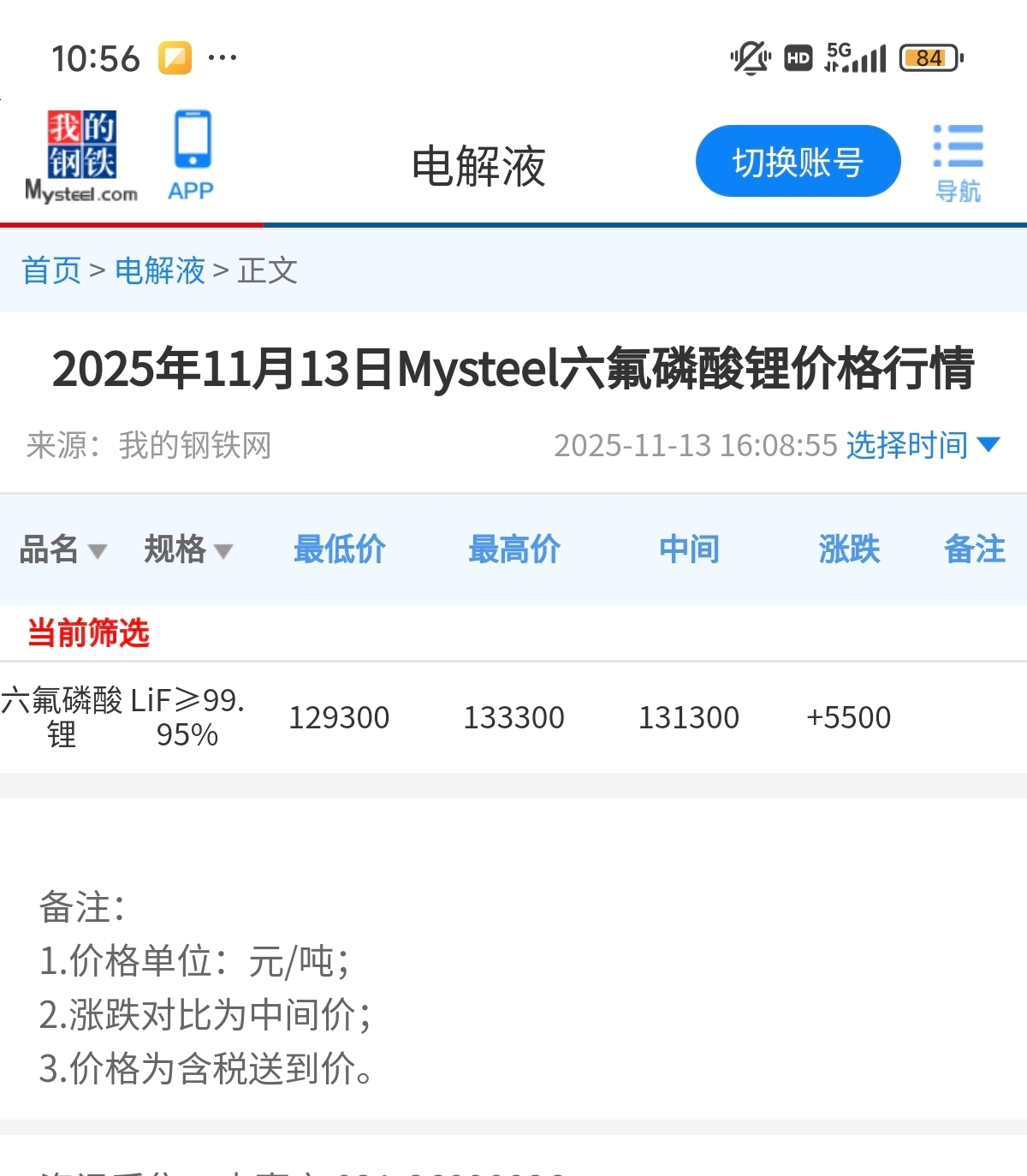 六氟磷酸锂昨日+5500,已经13万多一吨,周末接着涨