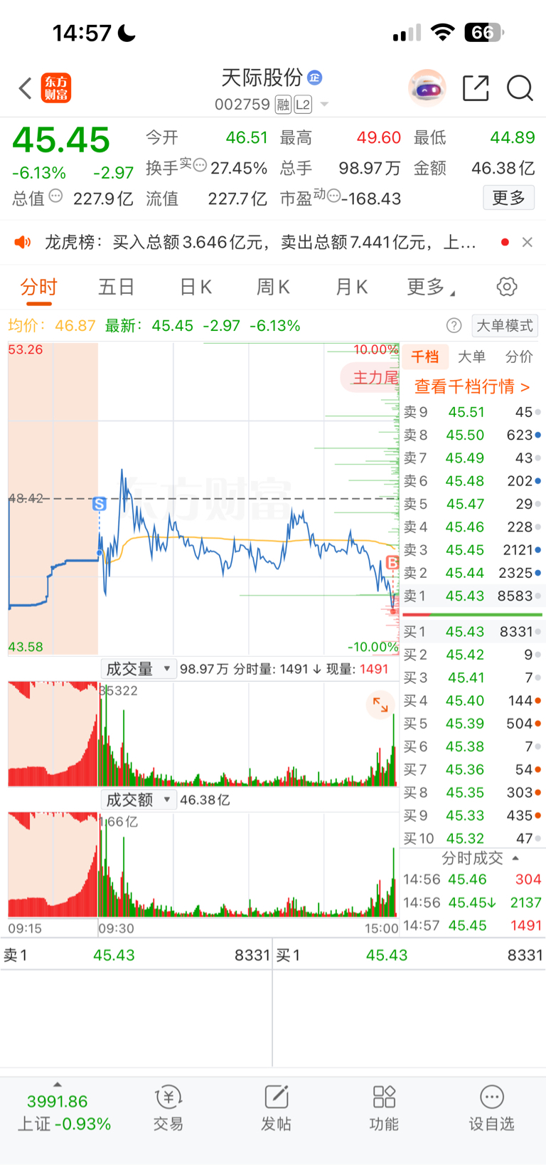 感谢韭菜们砸盘! 刚才44.90抄到底咯!哈哈哈 下周继续高开涨停咯