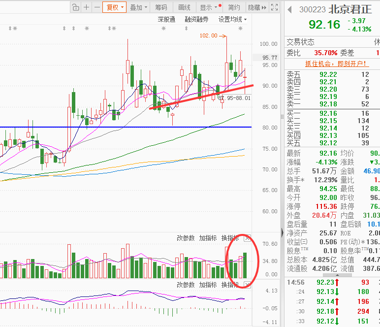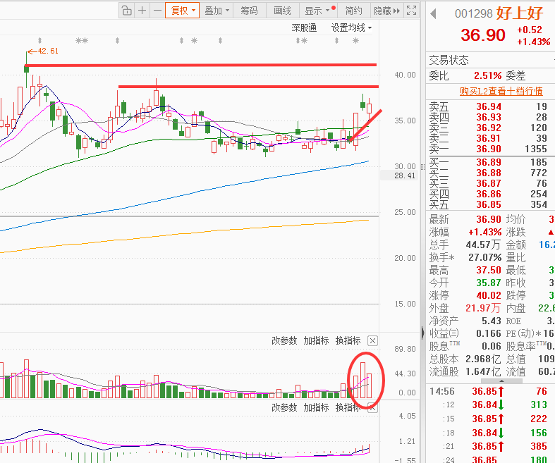 好上好,前面强调,股价才刚给到涨停反包突破,可稍微调整结束信号,周四的震荡可视为在清洗跟风盘和释放高位卖压力。上周五表现还不错,在大盘弱势震荡过程中,股价低开稍微震荡后,支撑给到上行,不过有点可惜,在量能不够,且大盘持续大幅调整的情况下,最终未能突破上周四的高点。