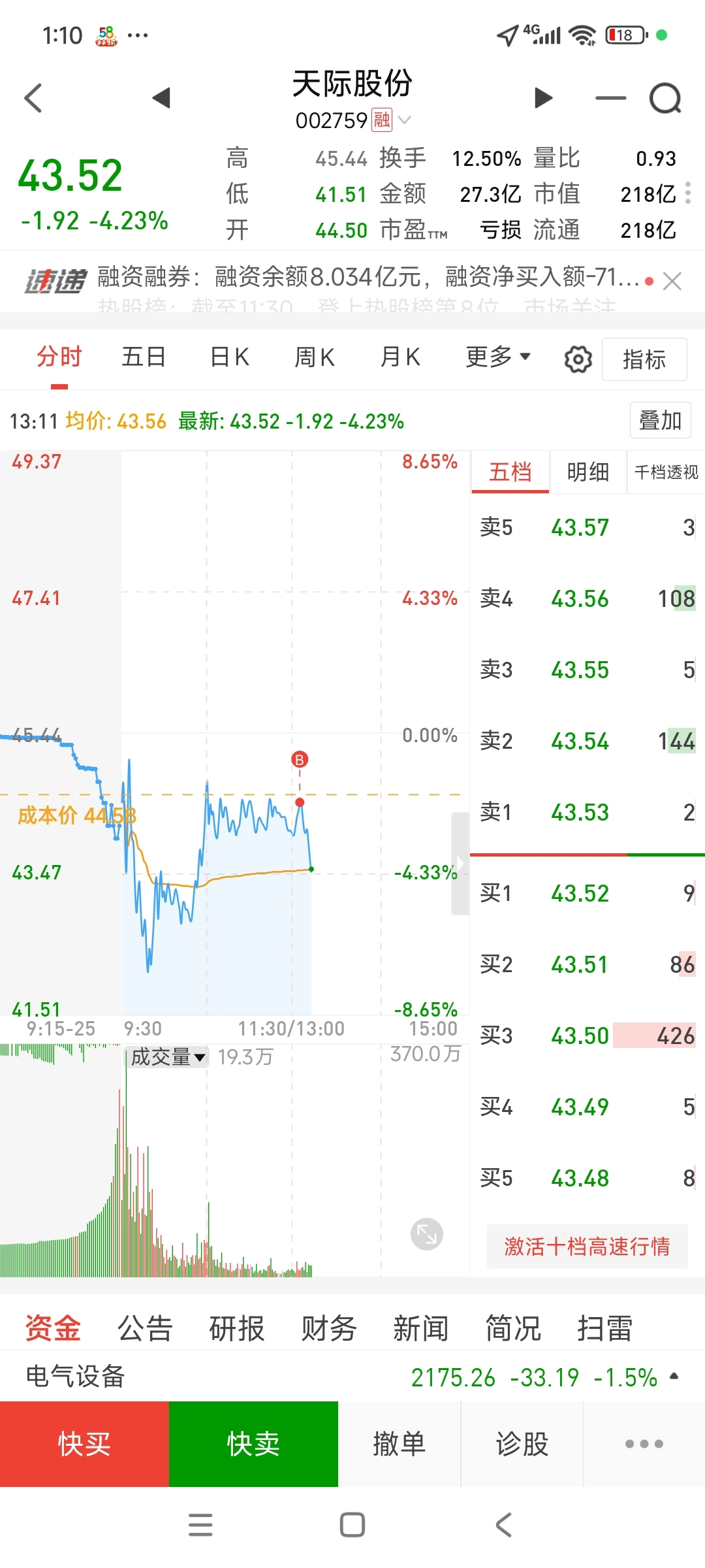 $天际股份(SZ002759)$ 一买就崩的属性,实在对不住大家