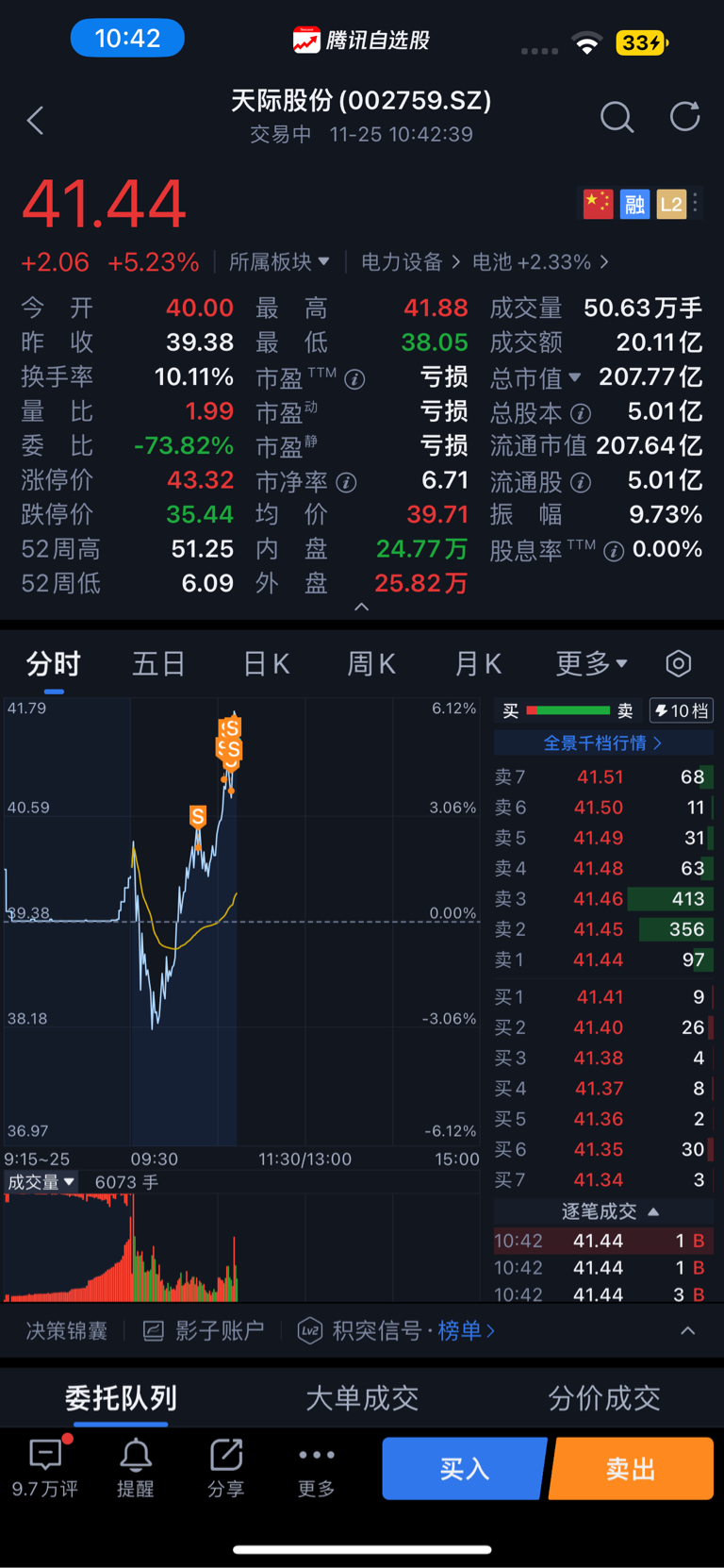 $天际股份(SZ002759)$ 吃肉发卖飞也高兴少挣4千多