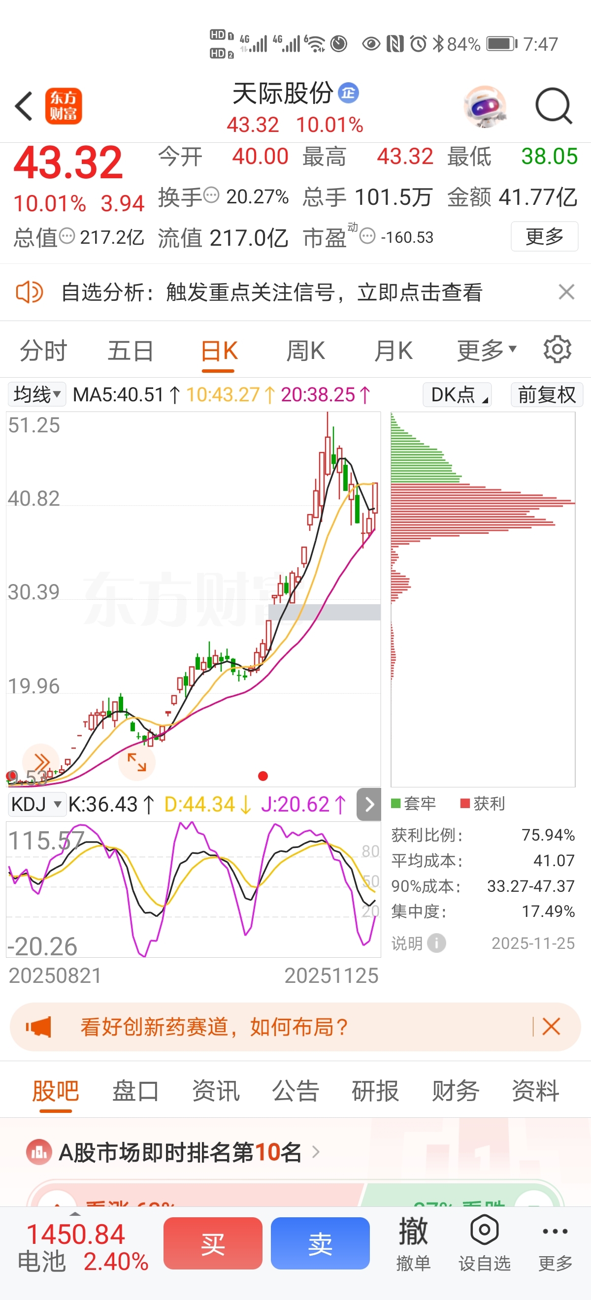 $天际股份(SZ002759)$ 这次要创新高,KDJ低位金叉