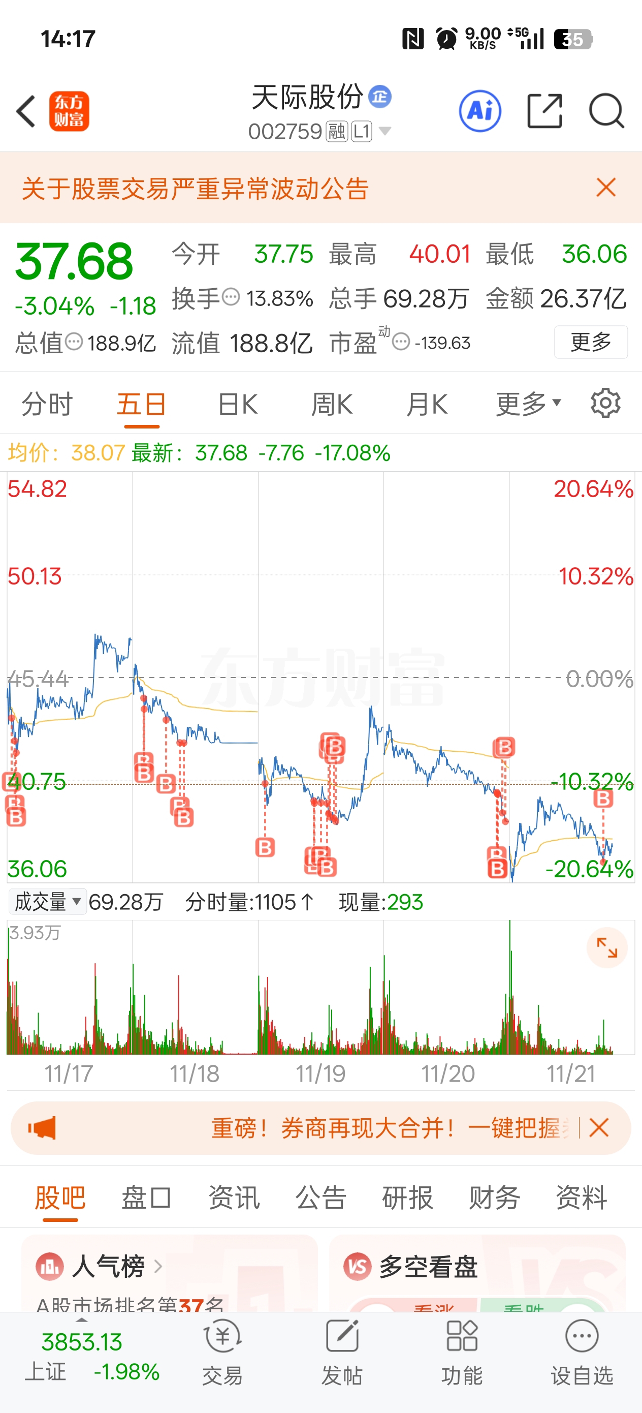 $天际股份(SZ002759)$ 还好上周机智,猛干