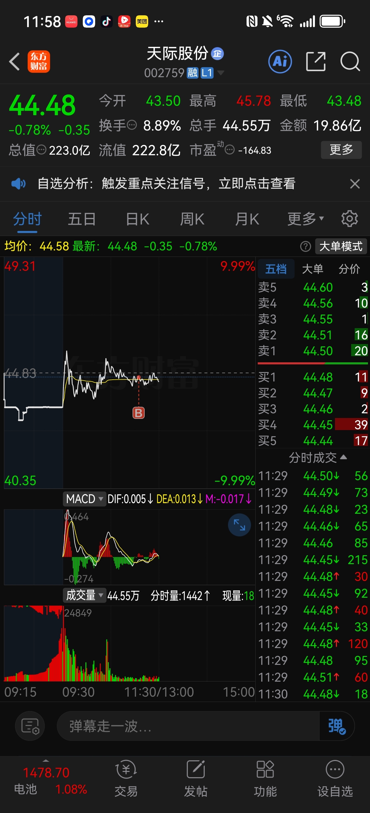 $天际股份(SZ002759)$ #炒股日记# 今天下午会不会红啊?我感觉现在是山顶上啊