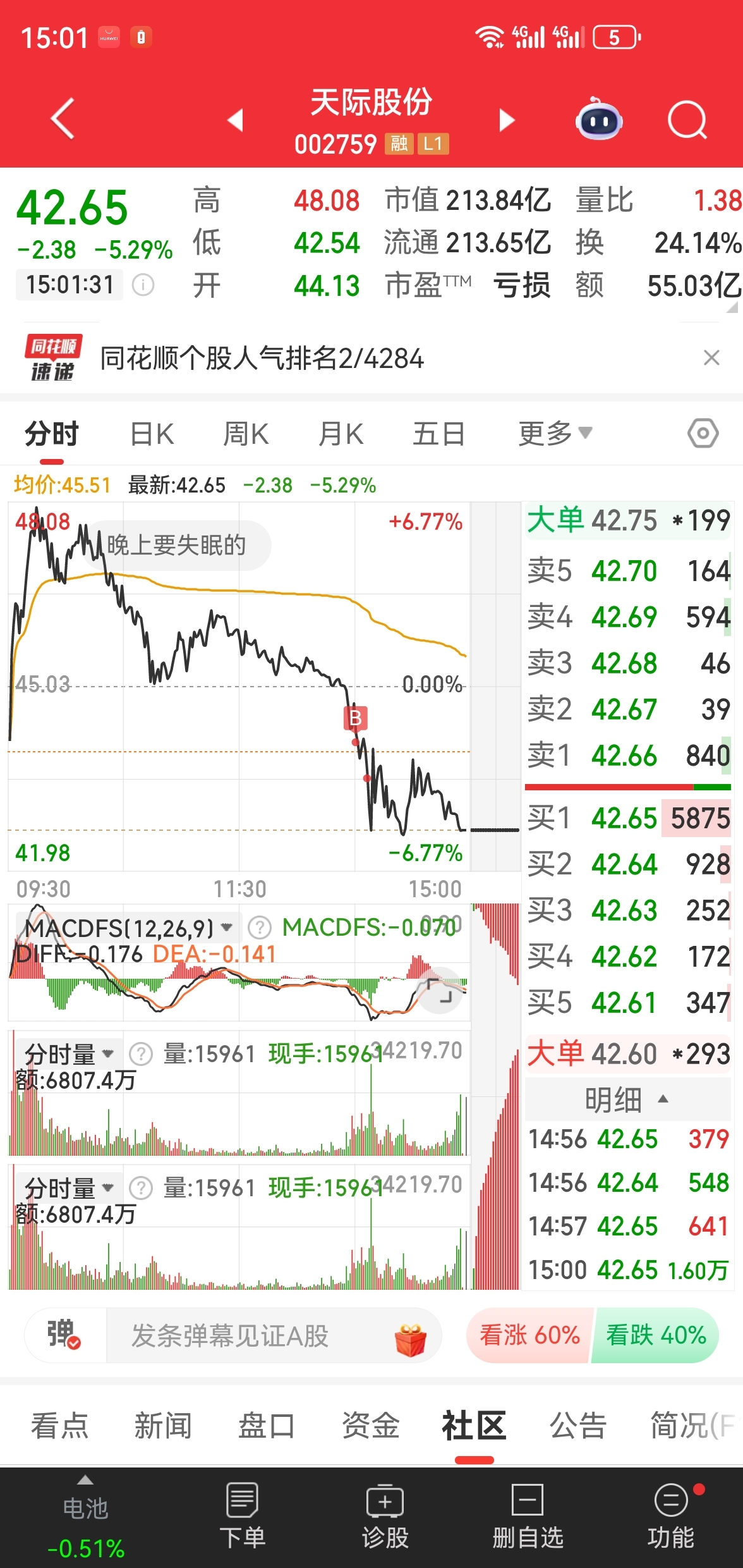$天际股份(SZ002759)$ 吓得我立马撤了再买入的单,根本不会反弹,虽然亏了,但少亏就是赢