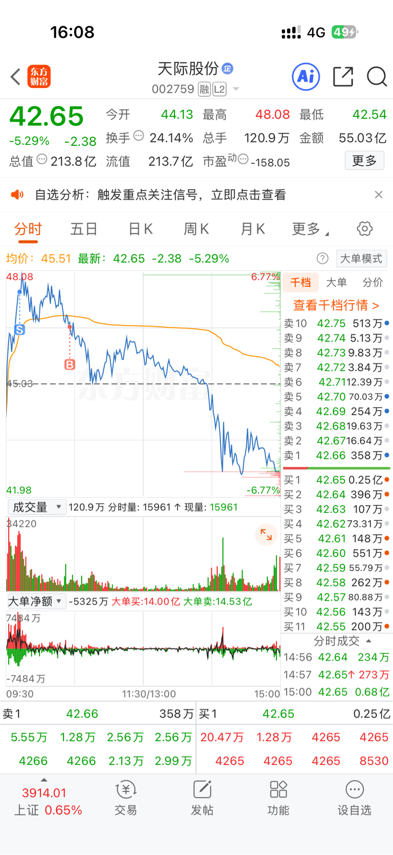 $天际股份(SZ002759)$ 手贱的我!