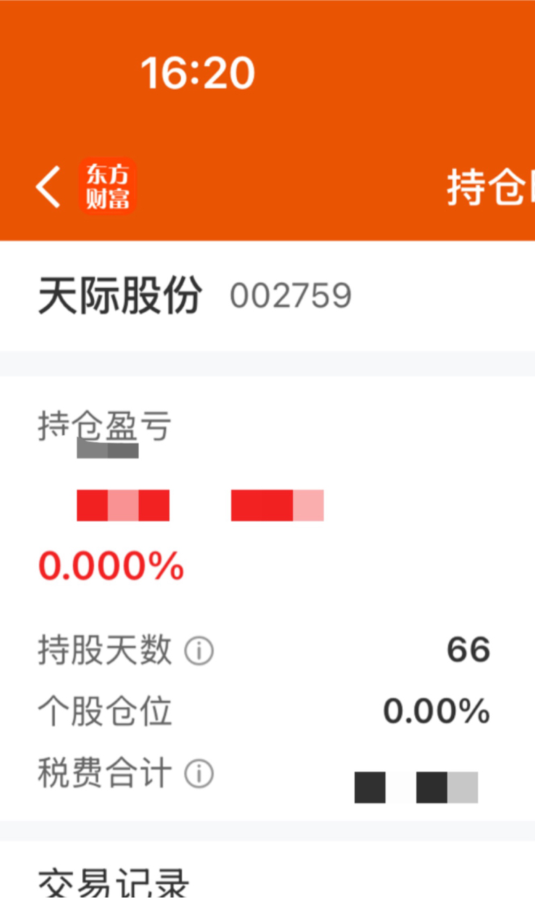 $天际股份(SZ002759)$ 满仓66天,今天再见了,过段时间再来