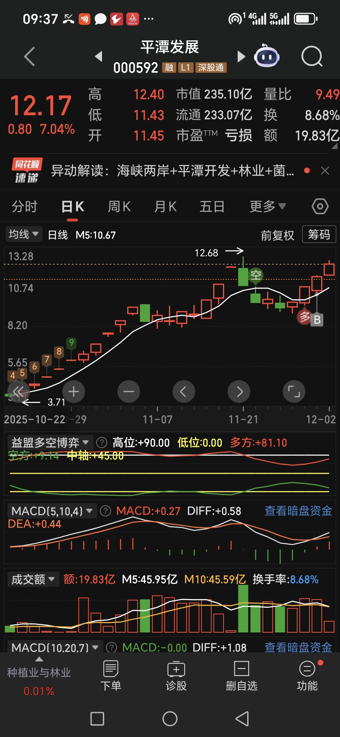 我已经切换到海峡两岸题材的榕基软件和平潭发展两个个股上,注意海峡两岸题材不不破十