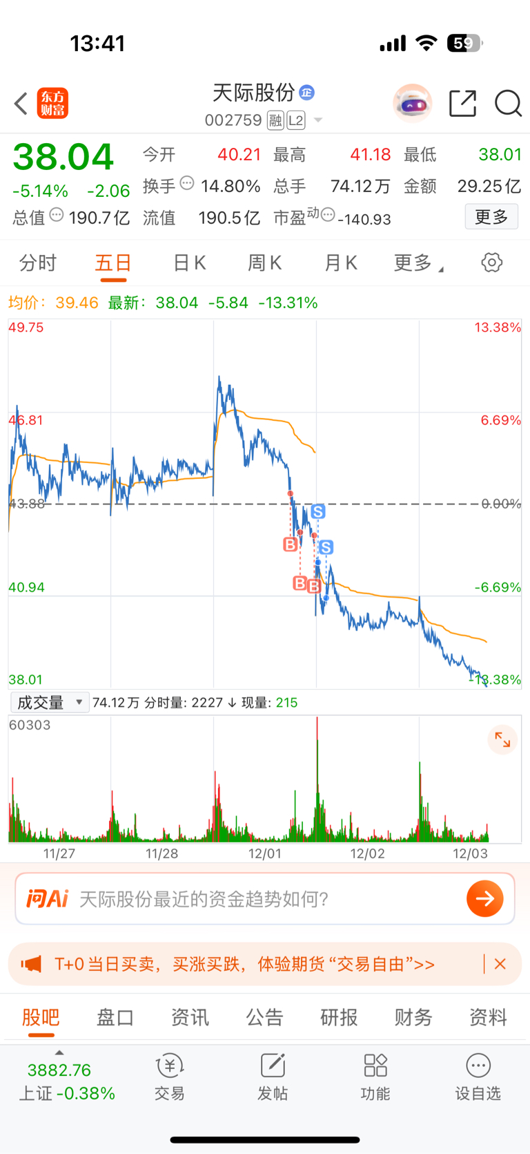 $天际股份(SZ002759)$ 昨天割的我心痛 现在看来心情好多了 转眼一想又进了另一个坑