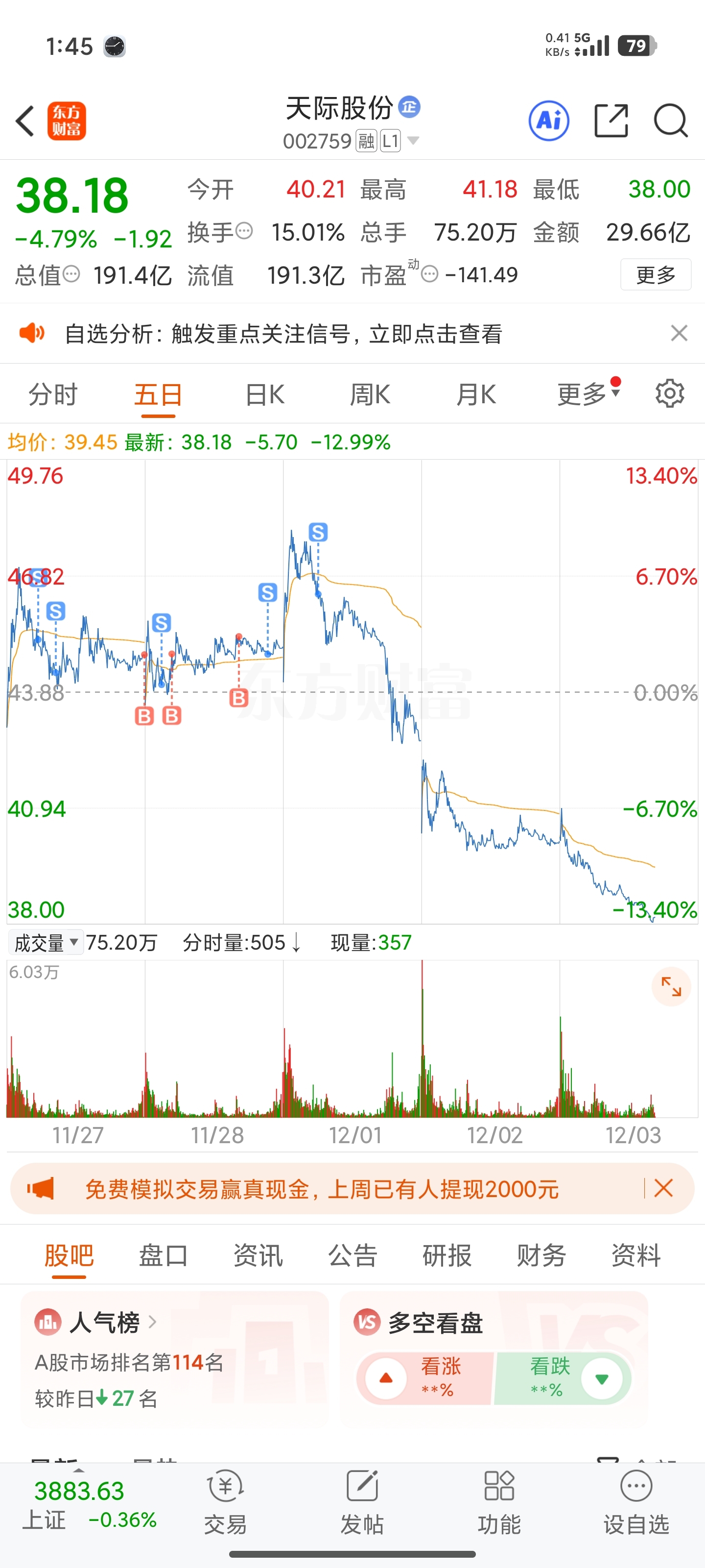 $天际股份(SZ002759)$ 你牛b哦,还好早跑了