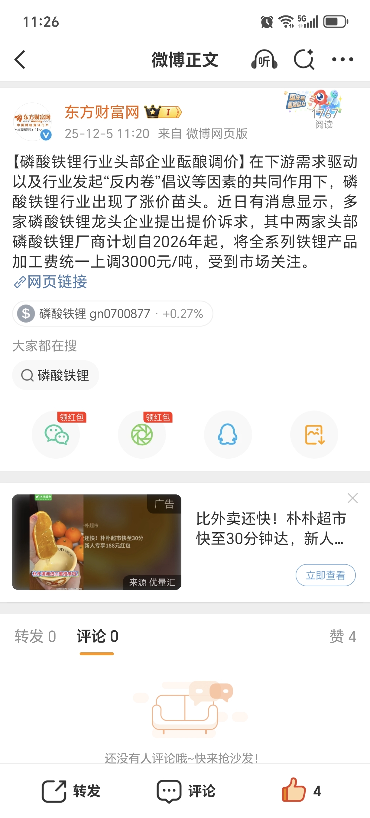 $天际股份(SZ002759)$ 我就说磷酸锂板块怎么突然拉升