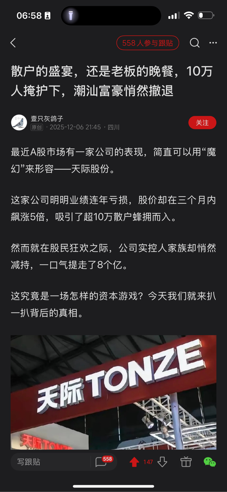 $天际股份(SZ002759)$ 忠告:持有持股的散户尽早撤退,否则将承受巨大损失!