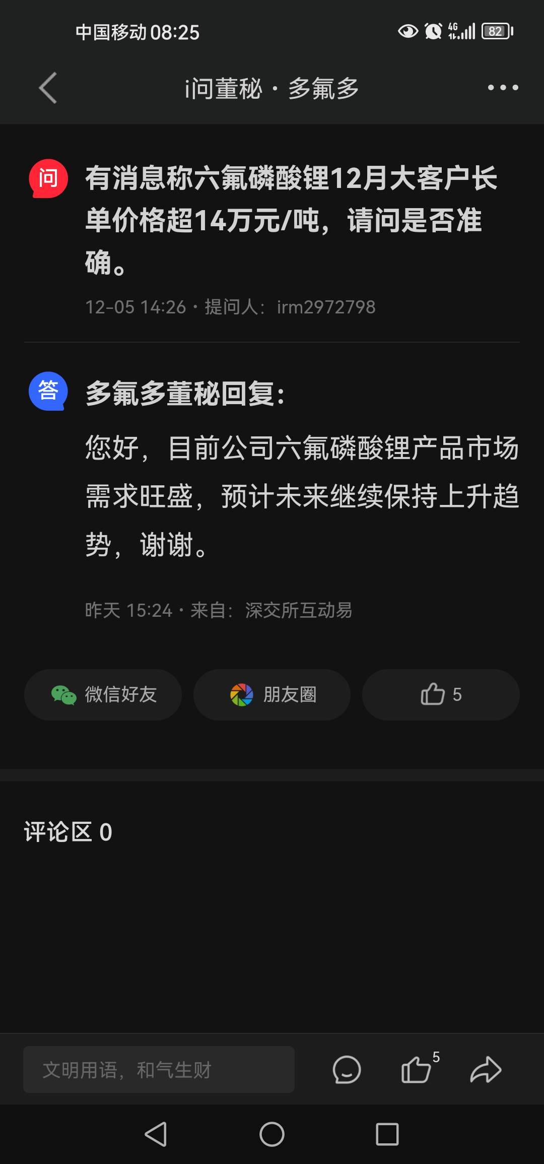 12月9日六氟大利好:多氟多董秘昨日盘后答复未来价格继续保持长期上升趋势!当然短