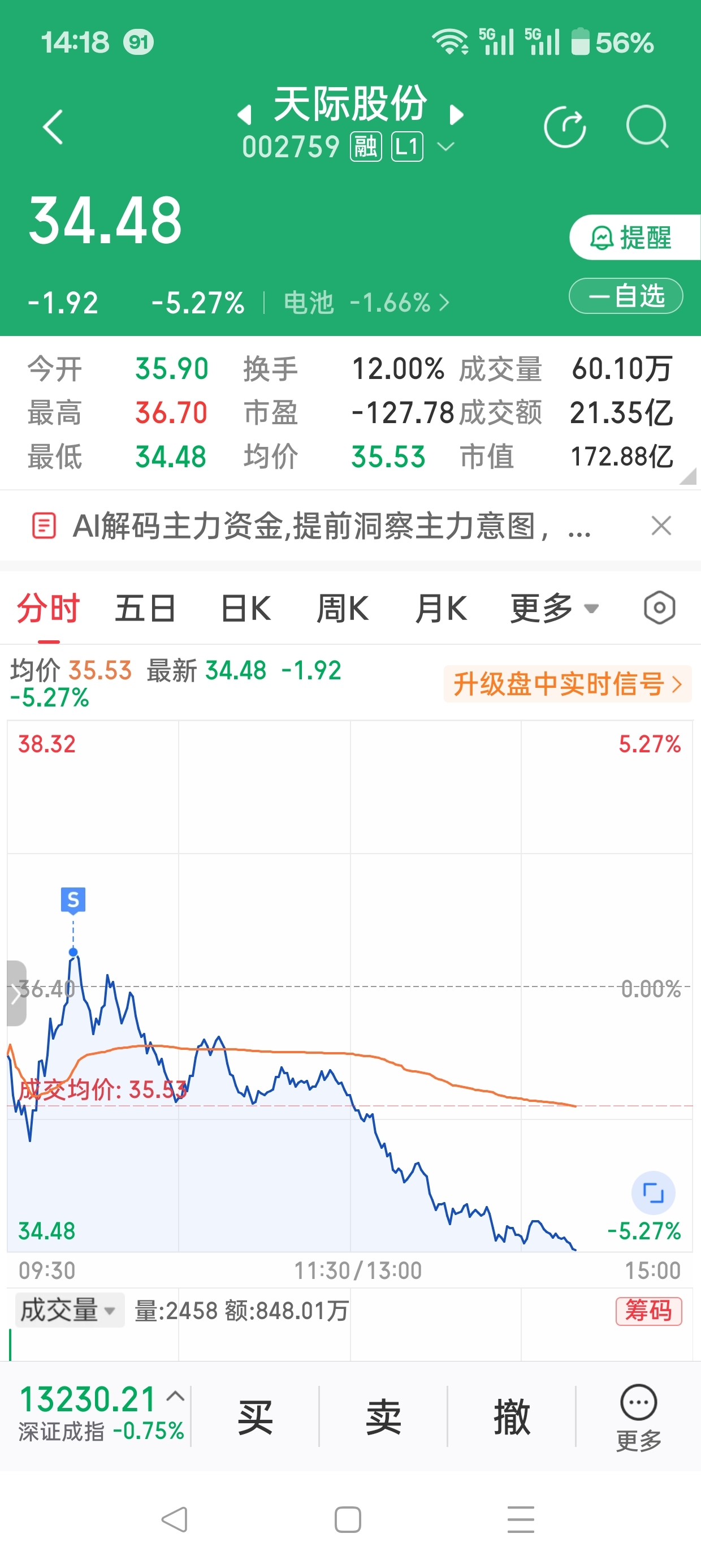 $天际股份(SZ002759)$ 走吧,卖出吧
