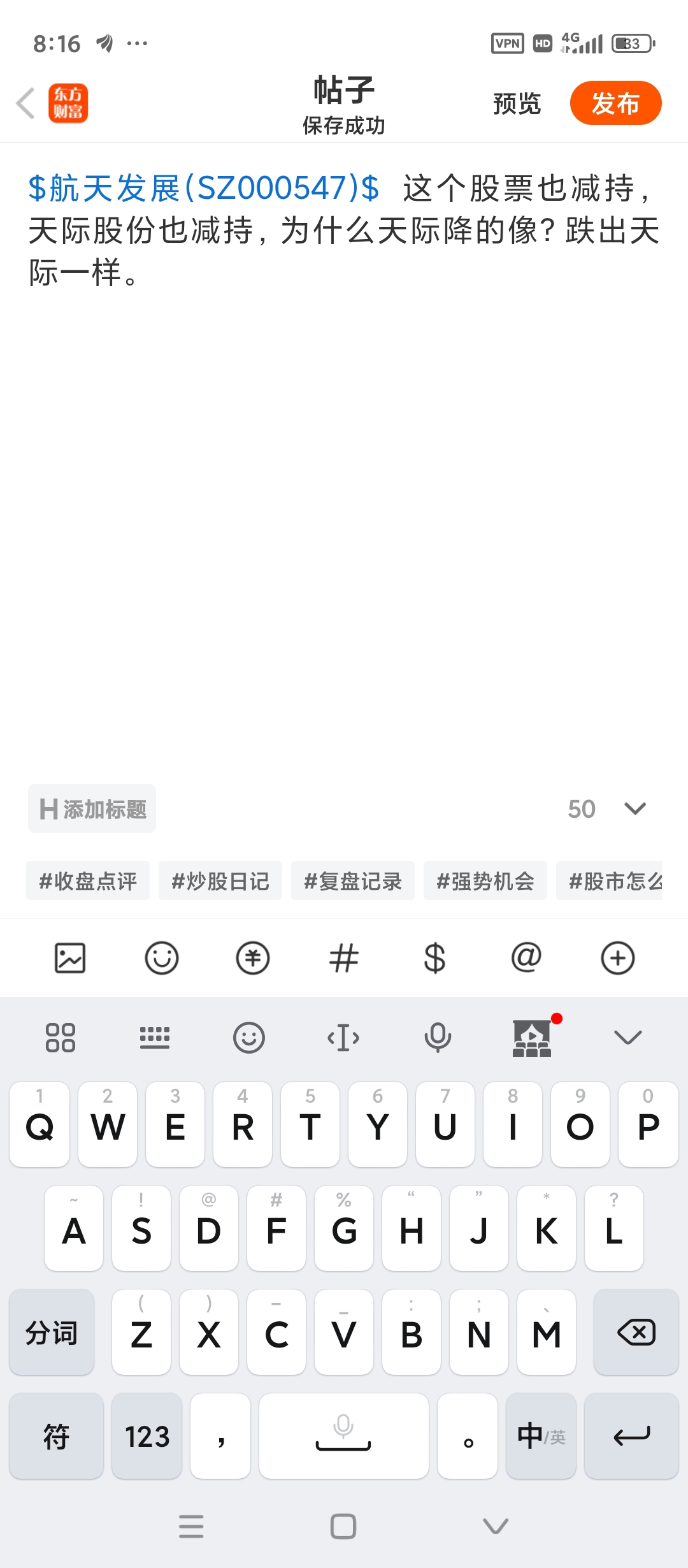 温馨提示: 1.根据《证券法》规定,禁止编造、传播虚假信息或者误导性信息,扰乱证券市场;2.用户在本社区发表的所有资料、言论等仅代表个人观点,与本网站立场无关,不对您构成任何投资建议。用户应基于自己的独立判断,自行决定证券投资并承担相应风险。《东方财富社区管理规定》