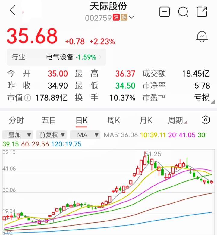 尽管不喜欢天际的大股东们,但是不否认天际还有空间。从51.25开始,巳经调整了1