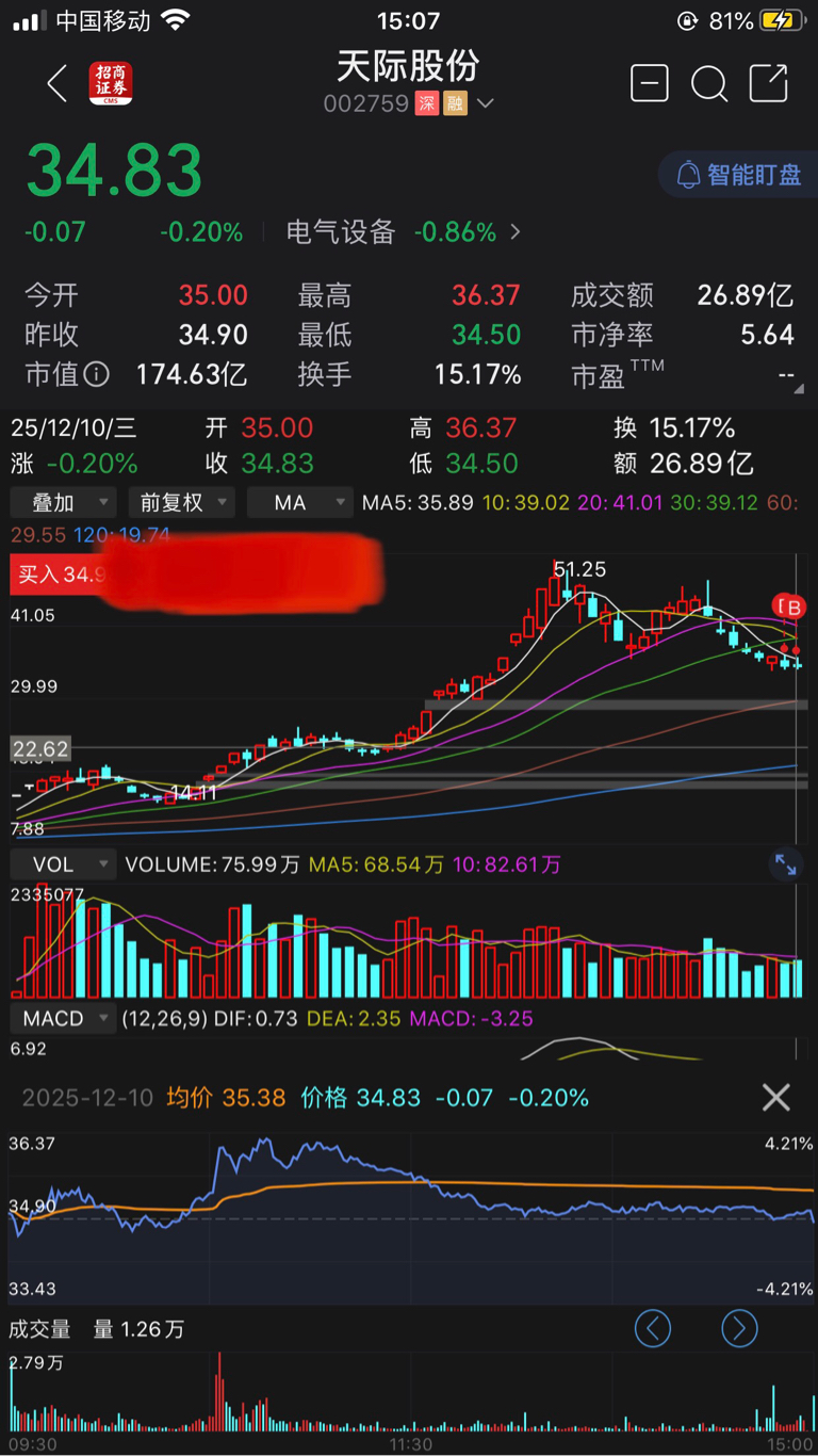 $天际股份(SZ002759)$ 你敢跌我就敢买,你再跌,我再买