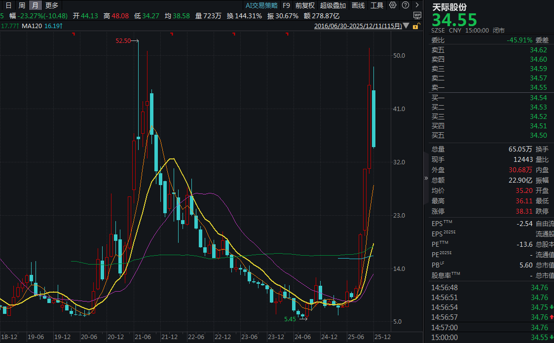 面对今年一度翻了5倍的股价,天际股份的减持如期而至。