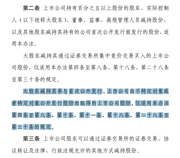 而据上述减持规则,大股东减持其参与首次公开发行、上市公司向不特定对象或者特定对象公开发行股份而取得的上市公司股份,适用范围并不包括上述提及的第九条、第十二条。