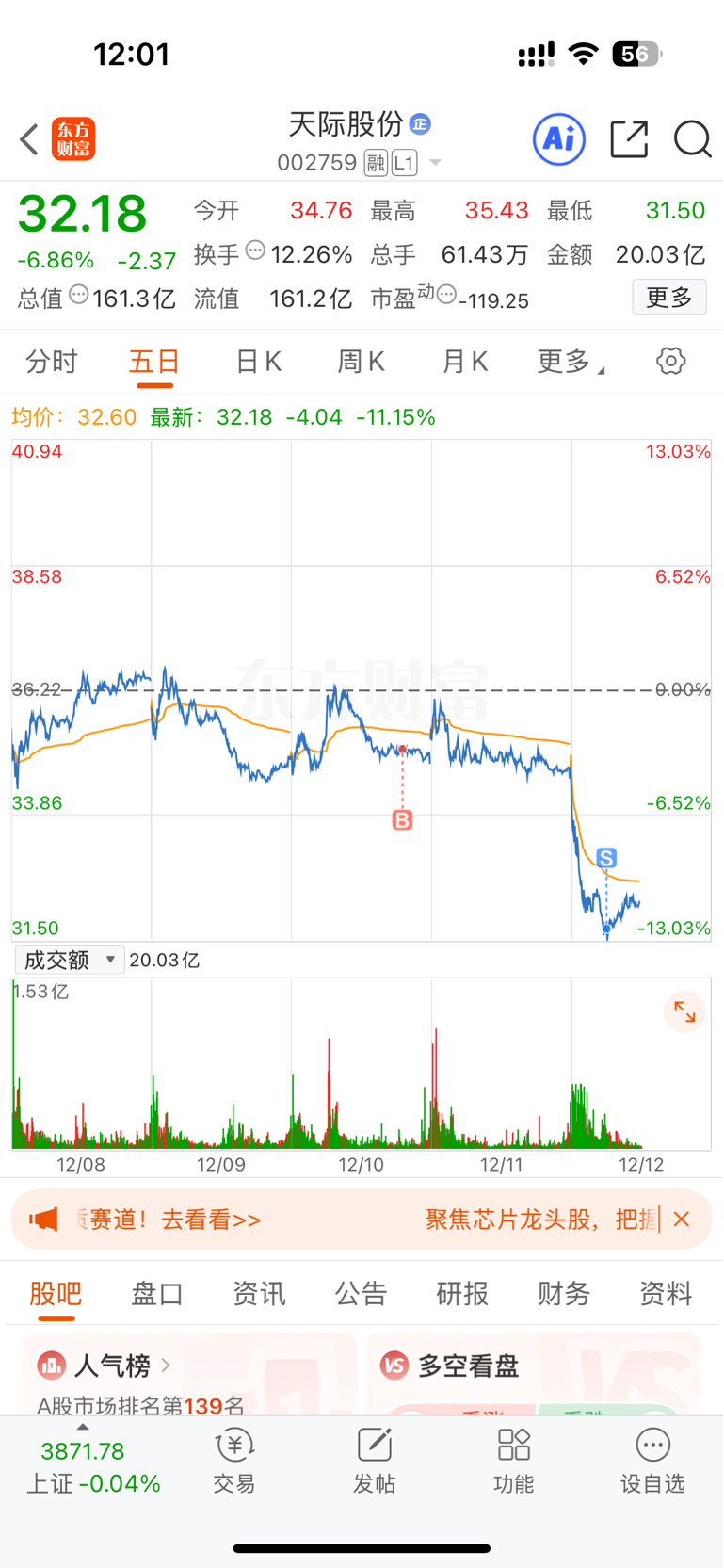 $天际股份(SZ002759)$ 这样都套了我10个点,你是真牛啊