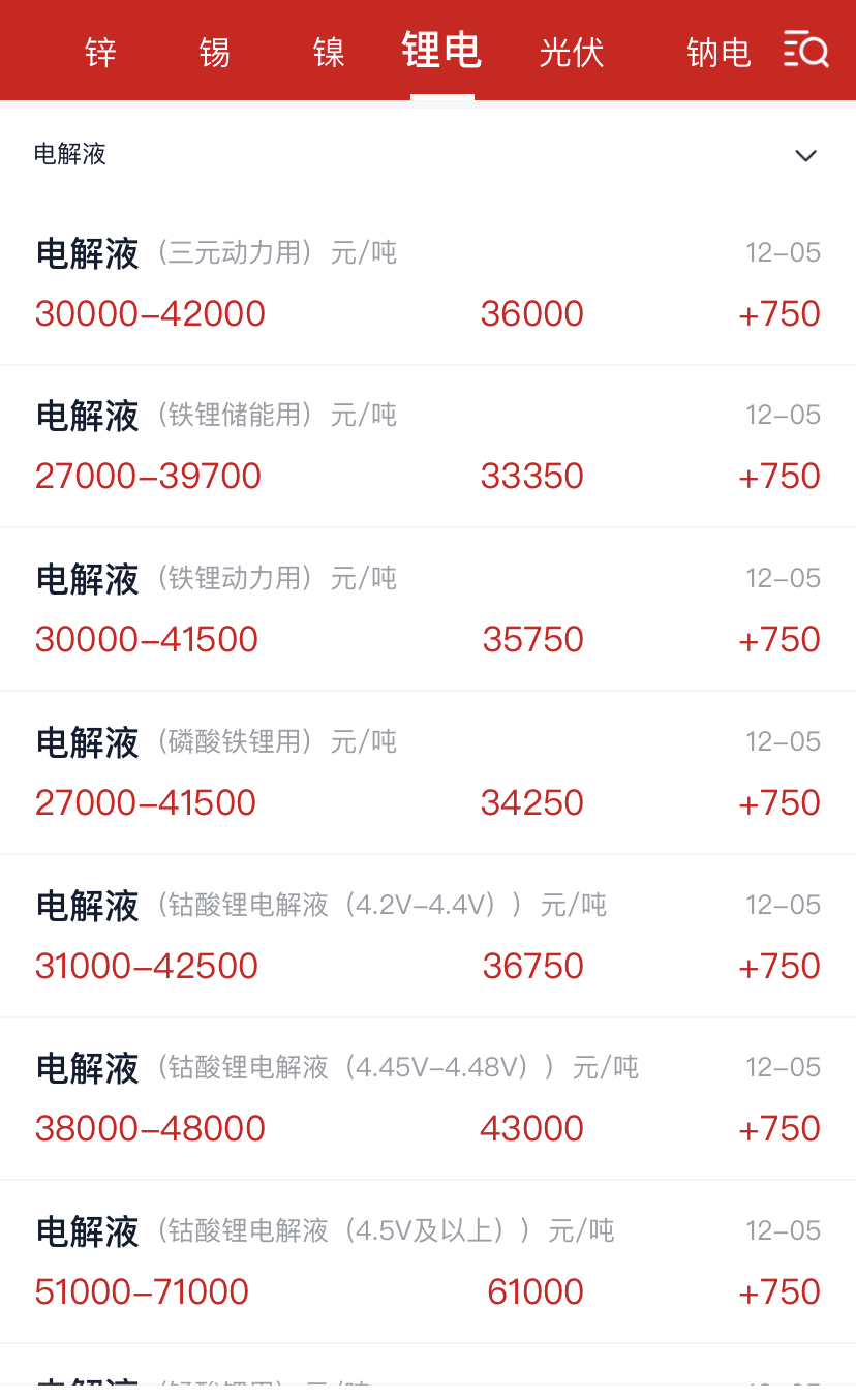 而电解液再次上涨7500元,本周的上涨幅度估摸在17-18%左右了。