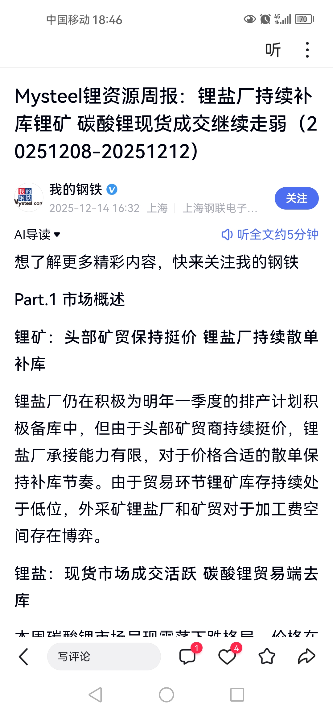 六氟磷酸锂12月以来稳步小涨:12月1日其现货均价为17.4万元/吨,之后逐步上涨,12月5日单日涨1000元/吨至17.625万元/吨;6 - 9日涨势放缓,日涨幅稳定在250元,9日均价达17.675万元/吨;11日均价涨至17.725万元/吨;12日报价区间17万 - 18.45万元/吨,均价维持17.725万元/吨,较月初累计涨幅1.87%。全年涨势迅猛:该品种价格从2025年7月的4.7万元/吨低点飙升至12月的17.725万元/吨,涨幅超270%。此轮涨价源于龙头企业满产但新增产能释放慢,叠加储能和动力电池需求旺盛,且下游长期订单锁价也支撑价格高位运行。