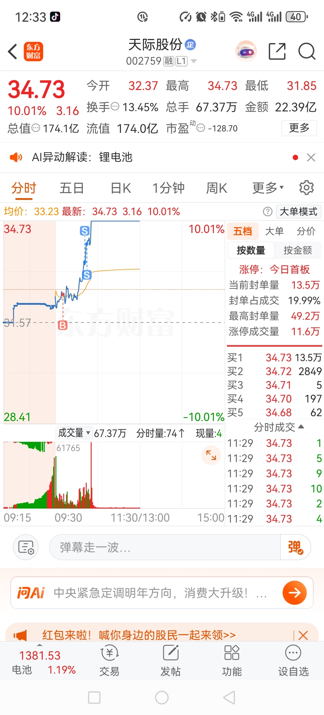 $天际股份(SZ002759)$ 中线看涨,短线反弹下就可以走了