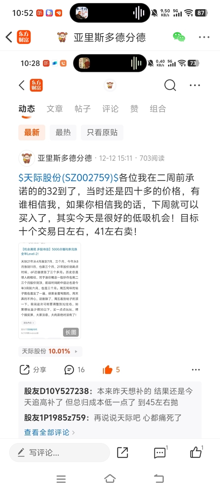 $天际股份(SZ002759)$ 前天卖了,昨天又买回来了,鉴于板块强势反弹,多氟多也涨停,可以适当调高预期,以前说41左右卖,可以调高到45,根据板块情况!