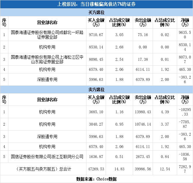 多主力现身龙虎榜,天际股份涨停(12-23)
