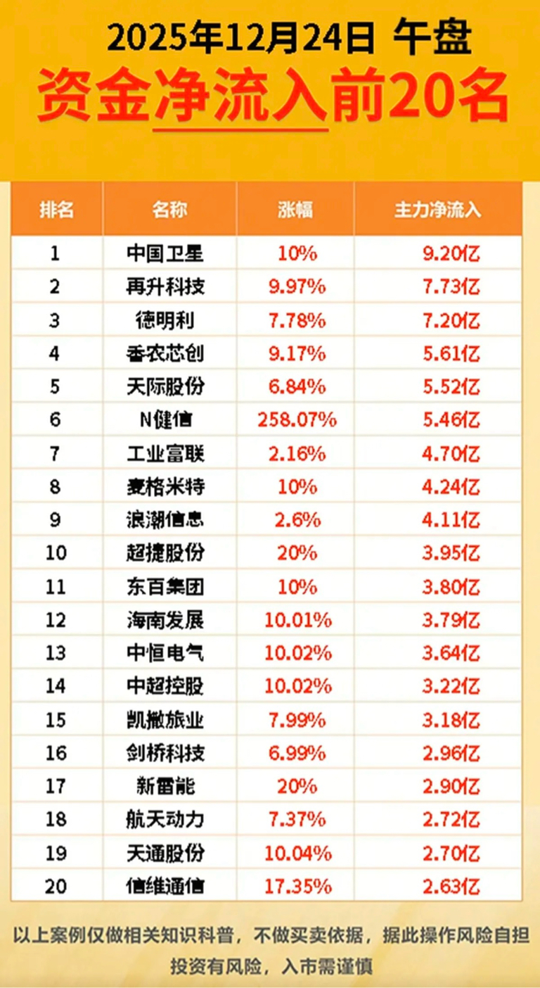 12/24周四 主力大资金 抢筹个股榜!