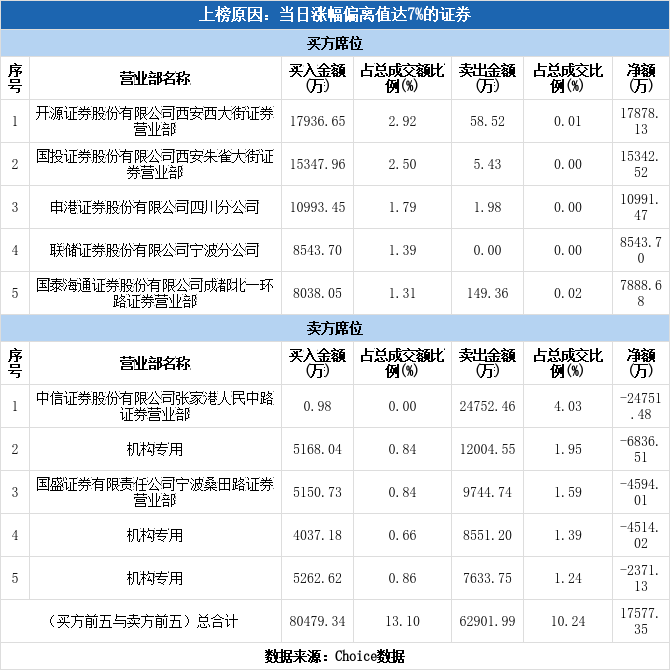龙虎榜数据显示,今日共3个机构席位出现在龙虎榜单上,分别位列卖二、卖四、卖五,合计净卖出1.37亿元,占该股今日总成交额的2.23%。除此之外还有航天发展、海南发展、航天电子等47只个股榜单上出现了机构的身影,其中26家呈现机构净买入,获净买入最多的是航天发展,净买额为7.94亿元;21家呈现机构净卖出,其中遭净卖出最高的为亚翔集成,净卖额为2.47亿元。