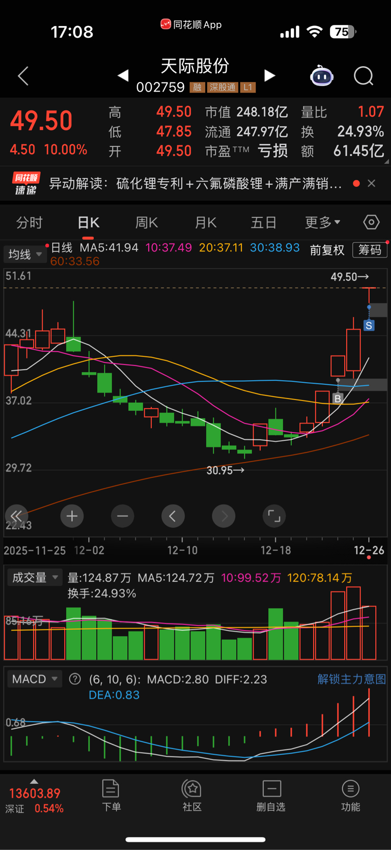 $天际股份(SZ002759)$ 今天两次开板被洗出去了,下周回头继续进