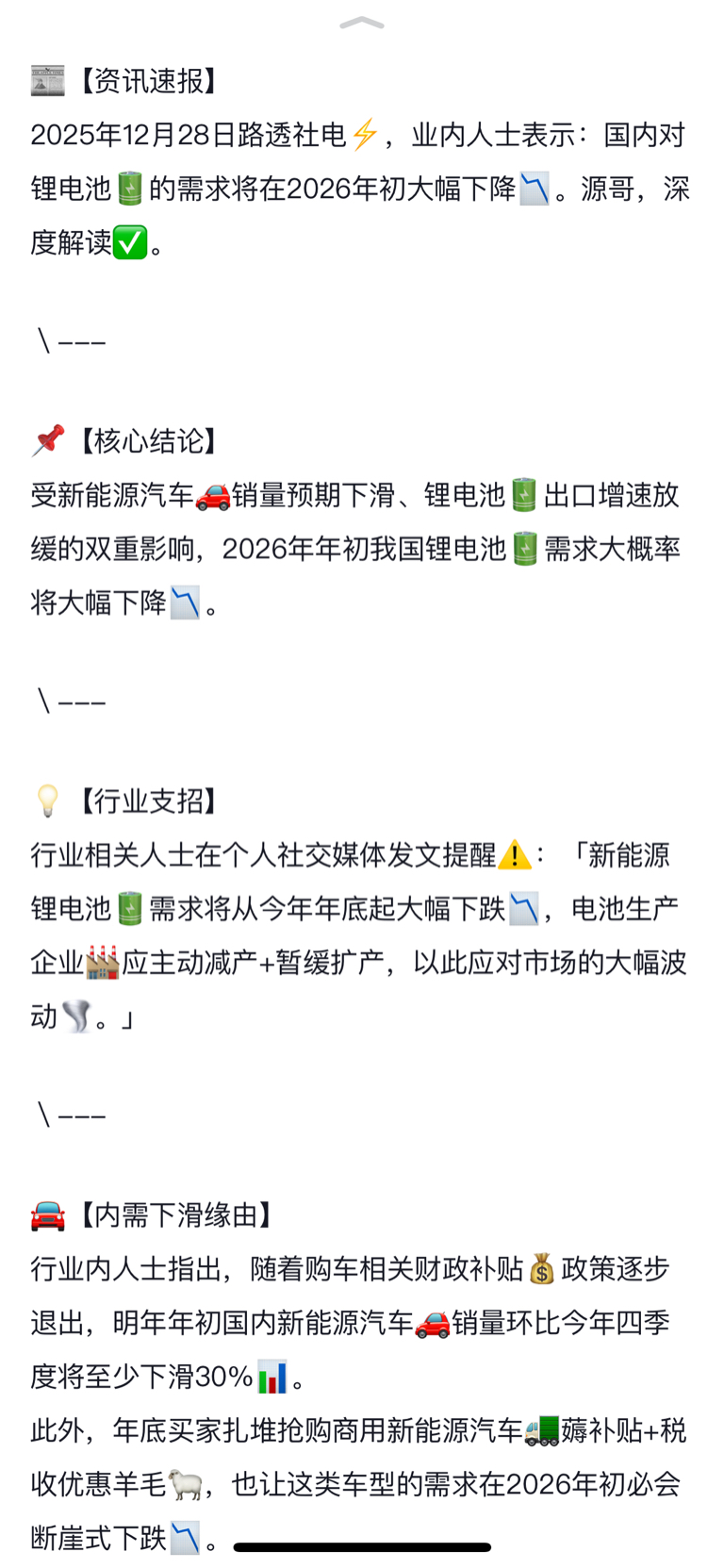 新能源出了大利空,叠加碳酸锂期货大跌,明天锂电板块走势不秒了