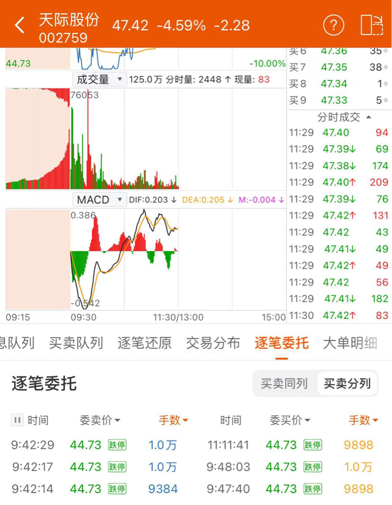 $天际股份(SZ002759)$ 为什么隔了2小时相同价格的9898手?