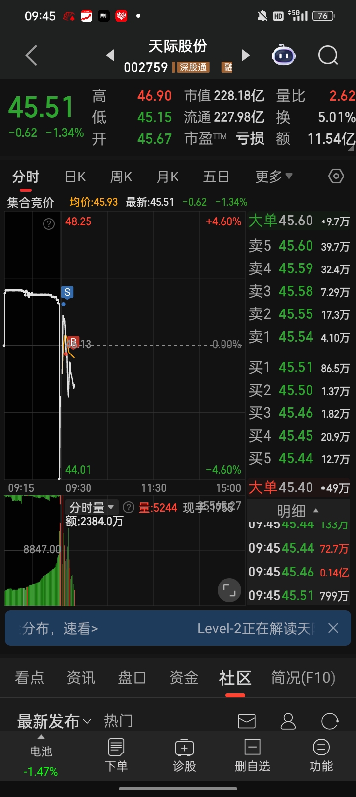 $天际股份(SZ002759)$ 几乎我接,他就继续跌,每次我不接他就涨,我怎么玩啊?