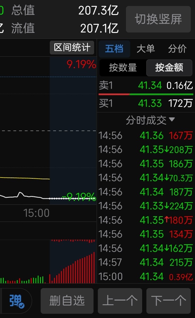最后一笔0.39亿在41.34价位拿筹码,如图。承接力量不弱哦。