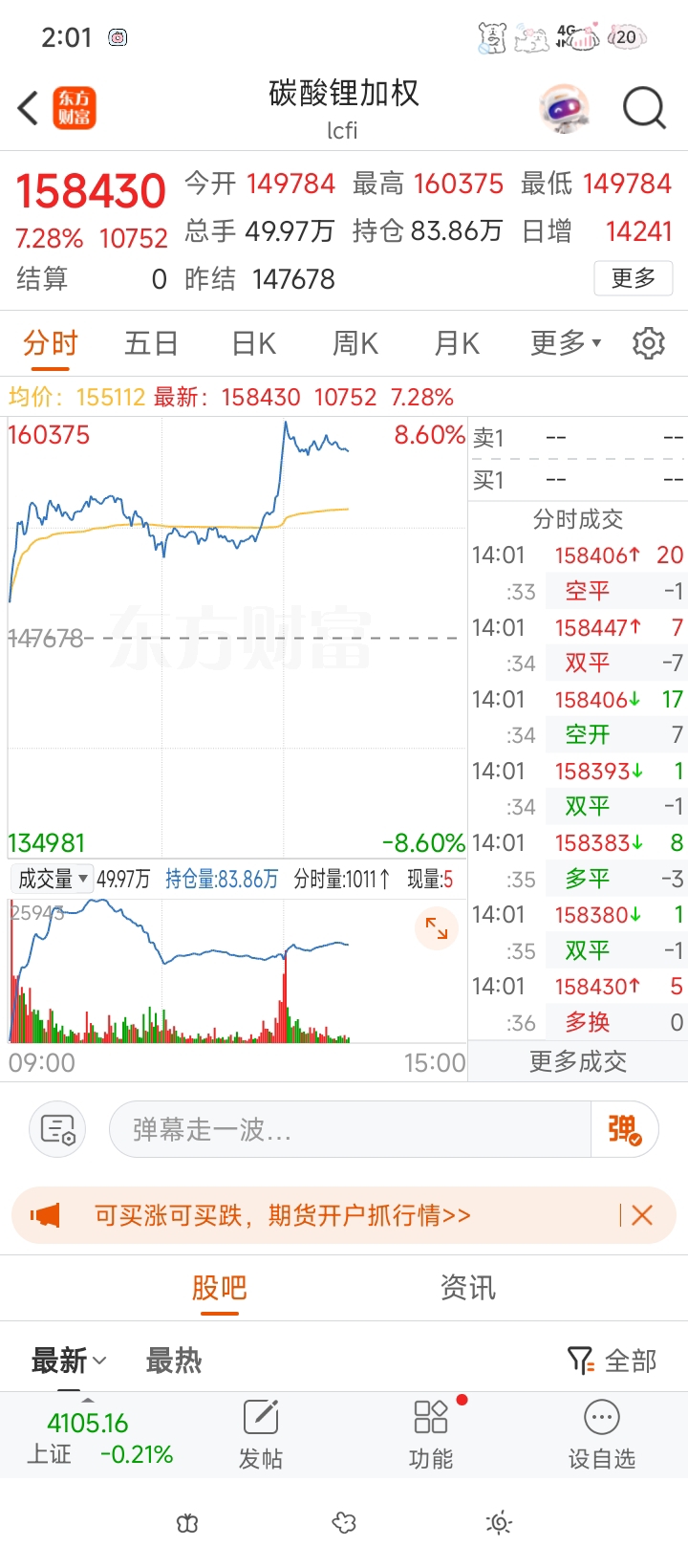 $天际股份(SZ002759)$ 碳酸锂都要涨停了