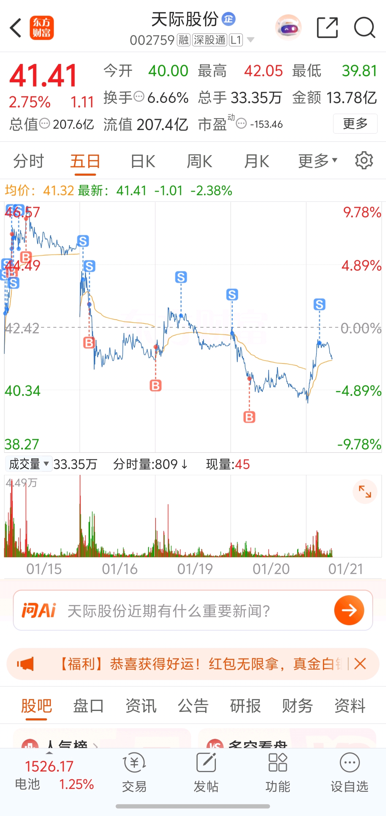 $天际股份(SZ002759)$ 每天做T,试图挽回损失