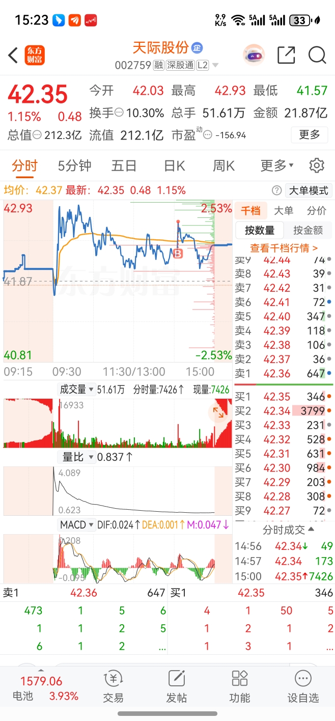 $天际股份(SZ002759)$ 站山顶了