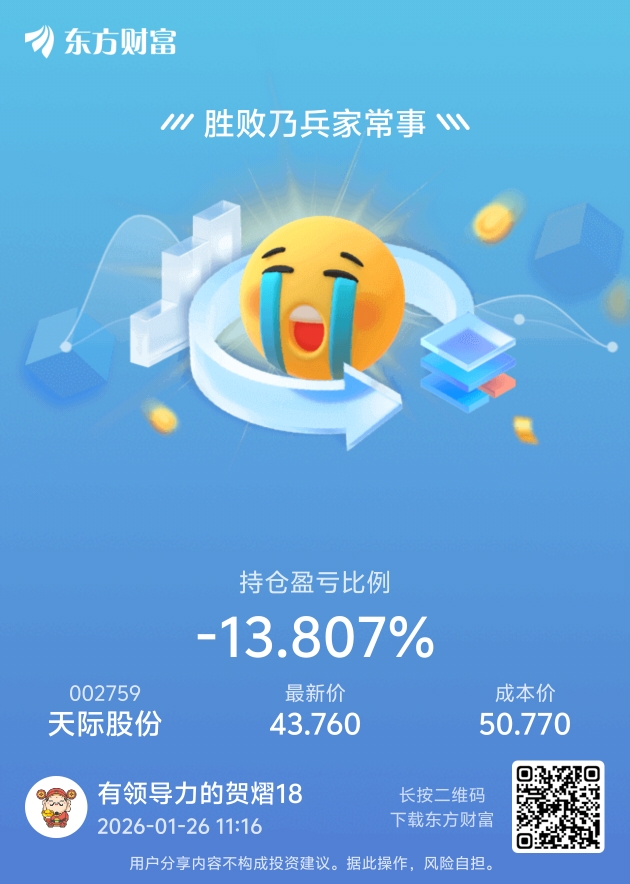 温馨提示: 1.根据《证券法》规定,禁止编造、传播虚假信息或者误导性信息,扰乱证券市场;2.用户在本社区发表的所有资料、言论等仅代表个人观点,与本网站立场无关,不对您构成任何投资建议。用户应基于自己的独立判断,自行决定证券投资并承担相应风险。《东方财富社区管理规定》