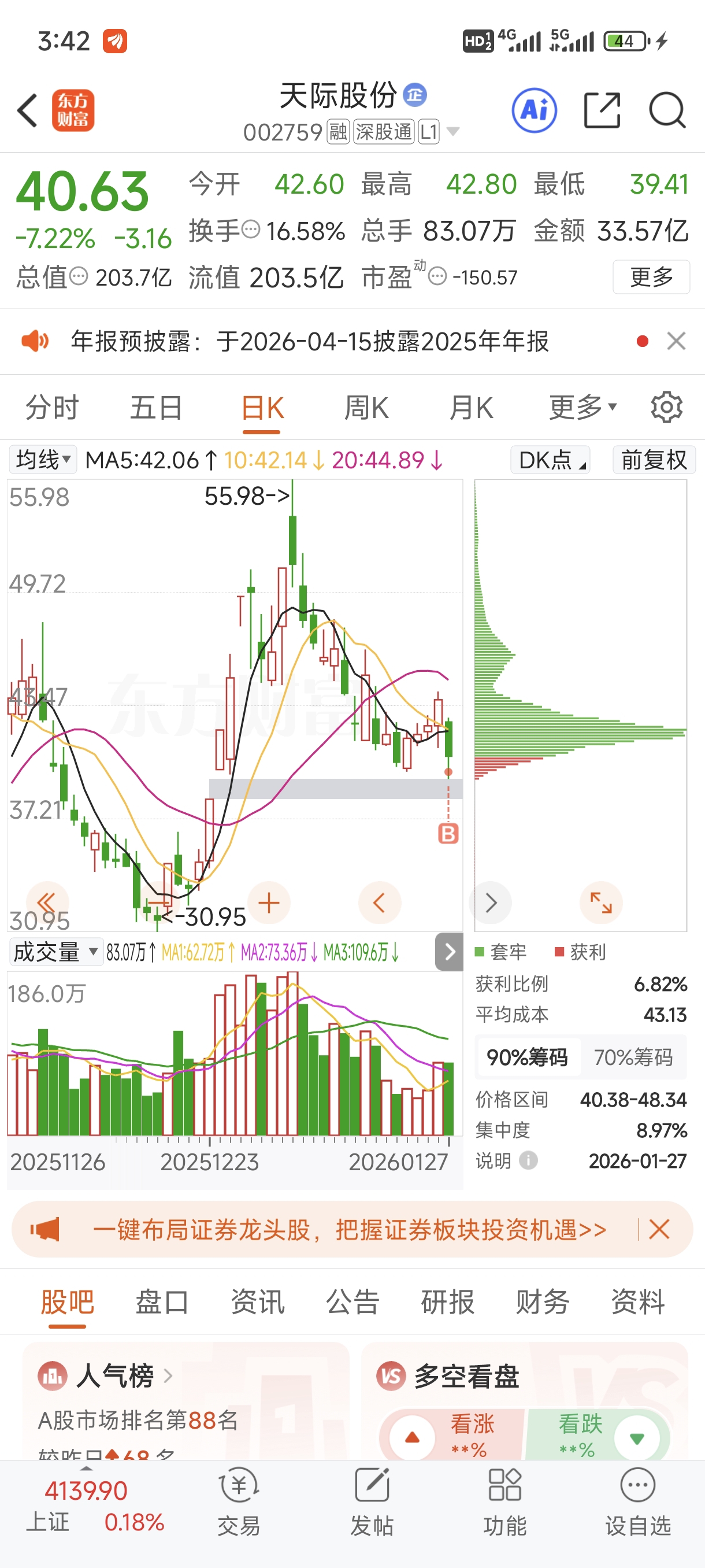 $天际股份(SZ002759)$ 不知道明天咋样