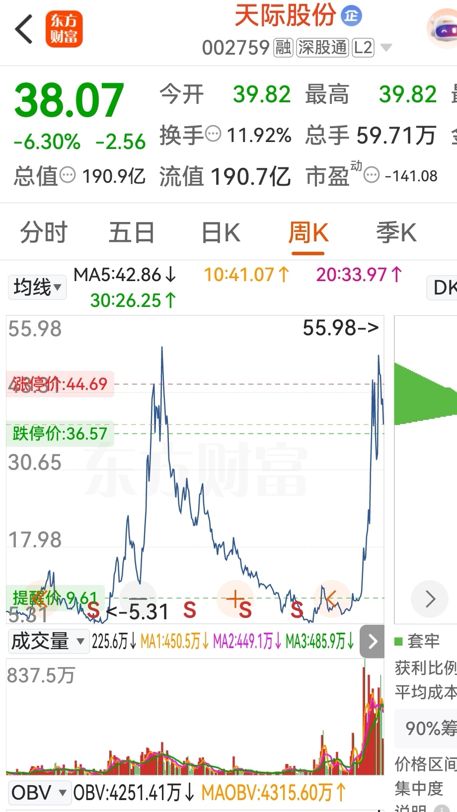 $天际股份(SZ002759)$ 谁来预测一下走势啊,我看了周线
