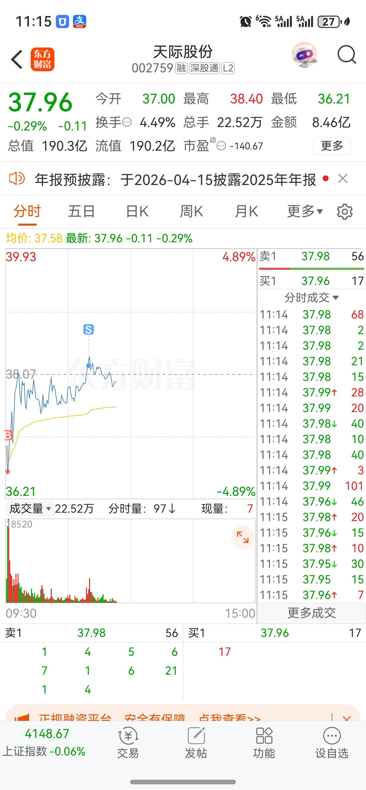 $天际股份(SZ002759)$ 任务完成!下午再下去再买!