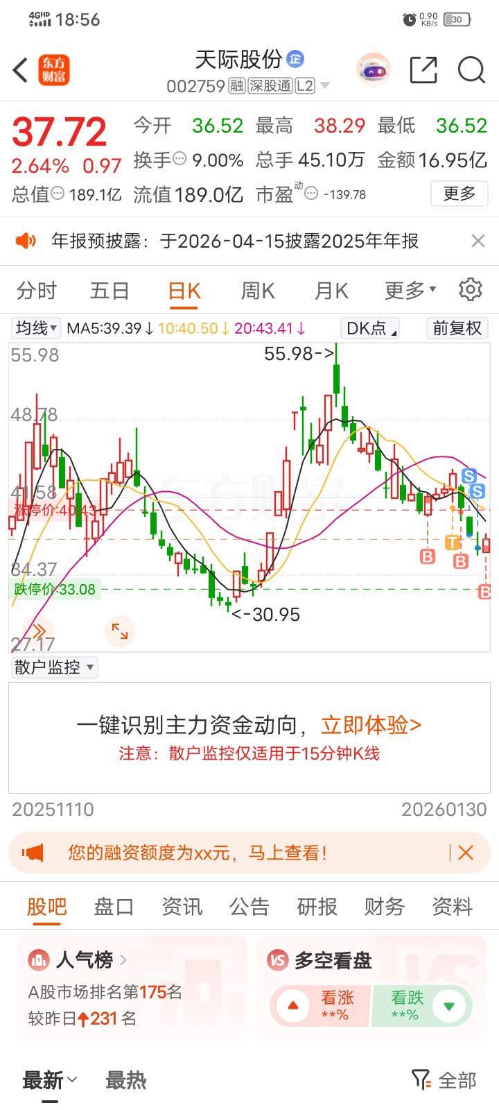 天际是我目前亏损最多的一个票,前两天割肉走了,今天又回来了,希望有点回报