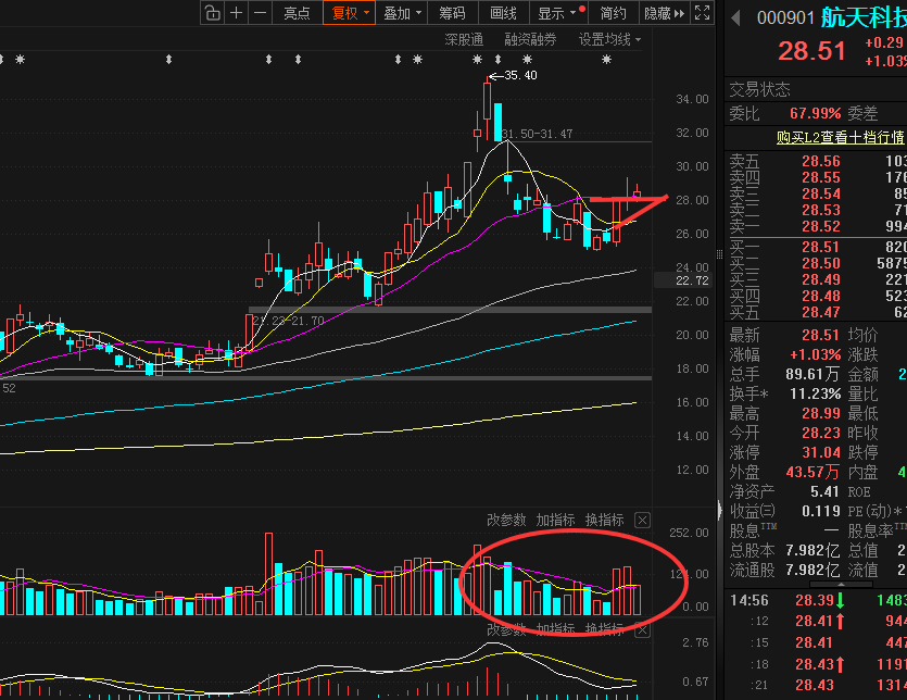 上周四给到强势涨停,这两天虽出现冲高回落,但短中期均线已经多头跟上,在已经出现明显吸筹和洗盘的情况下,短期只要量能稍微稳定,在均线支撑作用下,继续给到震荡上行的概率会偏大。