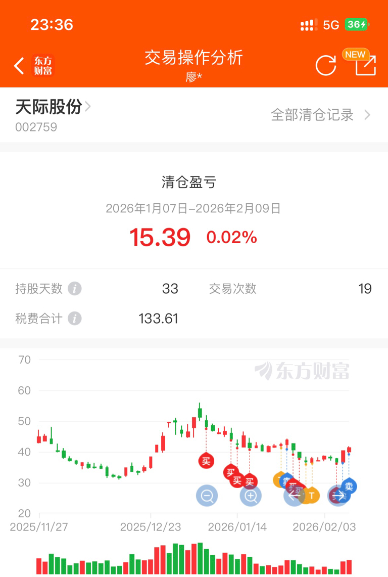 $天际股份(SZ002759)$ 48块多进来的,最低到了36块多 太艰难了这只股! 今天41回本卖出,此股不到30以下不敢碰了,真怕了