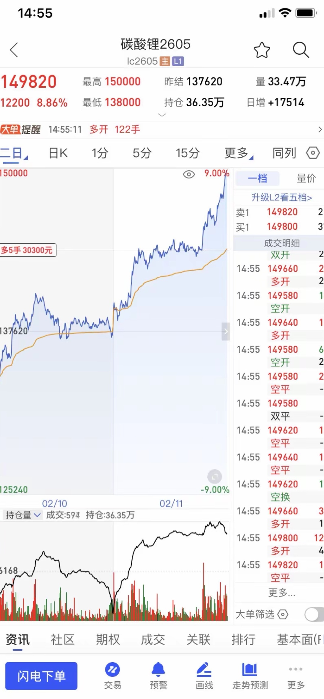 $天际股份(SZ002759)$ 因为期货市场碳酸锂 昨天涨幅8%,期货那边大涨~ 懂了吗 。估计有顶级大佬要爆仓(一大堆散户来这里评论)! 本来按期货市场行情,今日天际股份暴涨绝对二个涨停板起步~ #碳酸锂需求良好 盘中拉涨近5%#