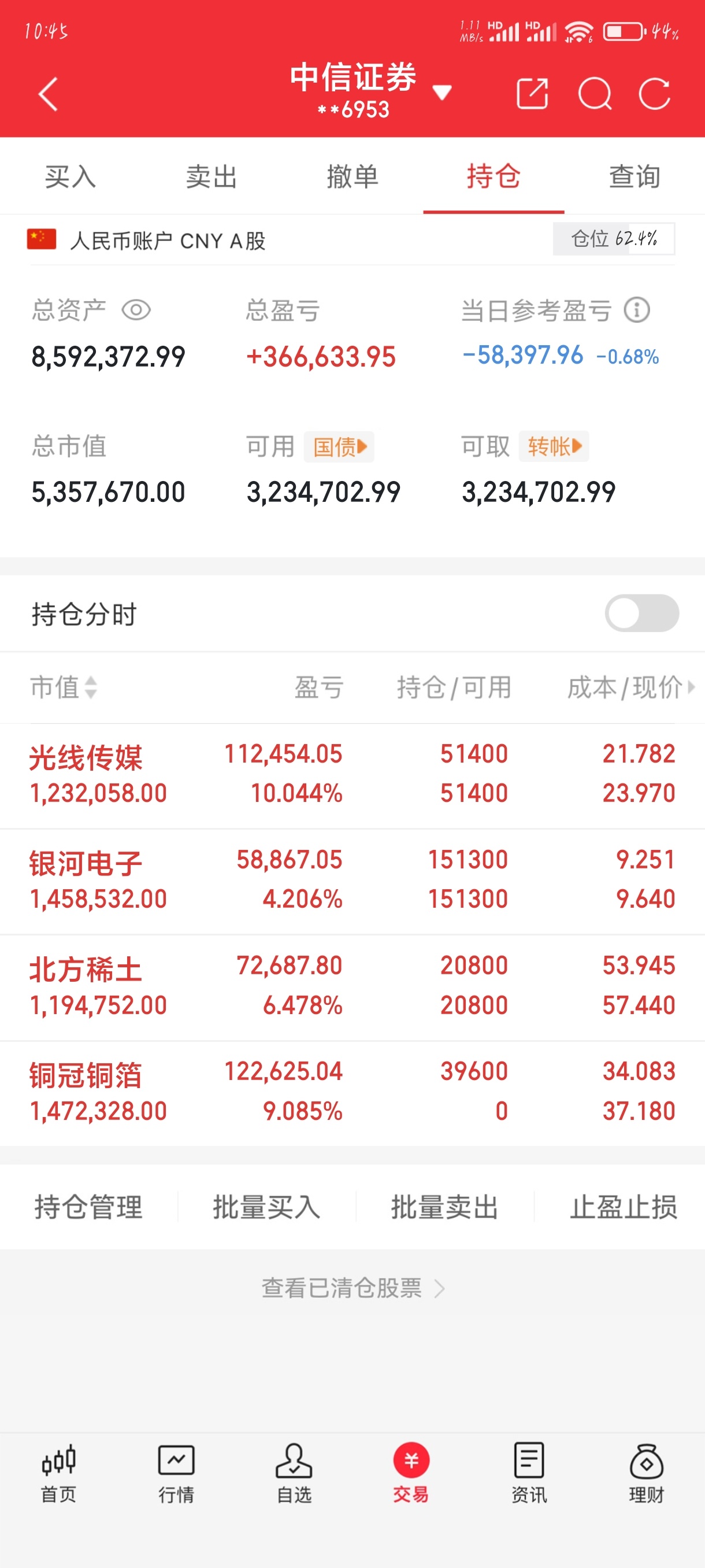 各位上午好,今日持仓更新,就明天一天了,大家一起加油今日继续持有光线传媒和银河电