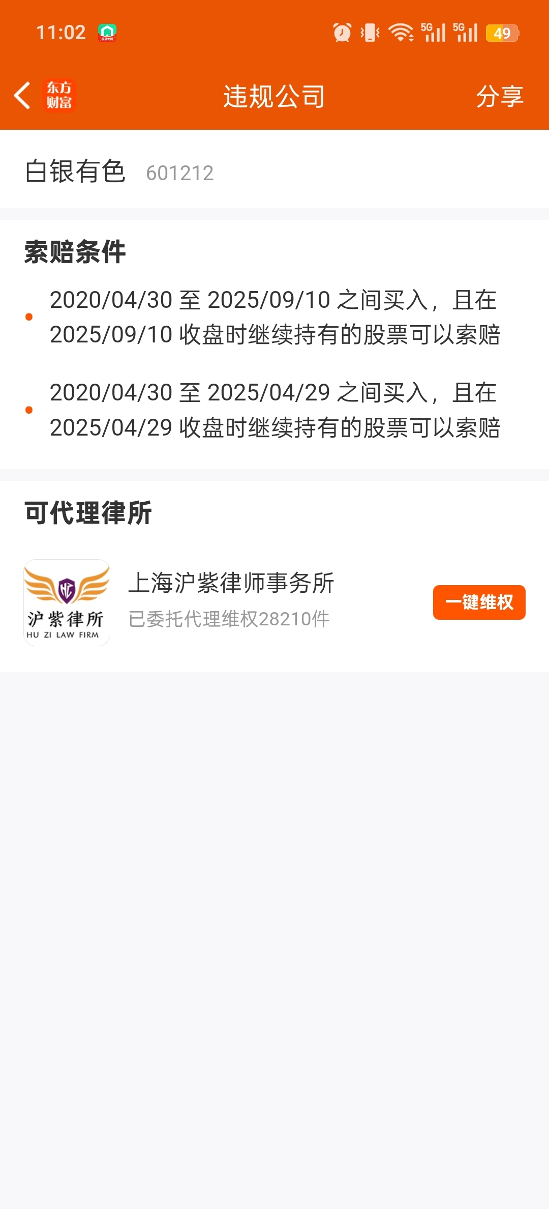 $天际股份(SZ002759)$ 白银有色去年9月11日立案调查