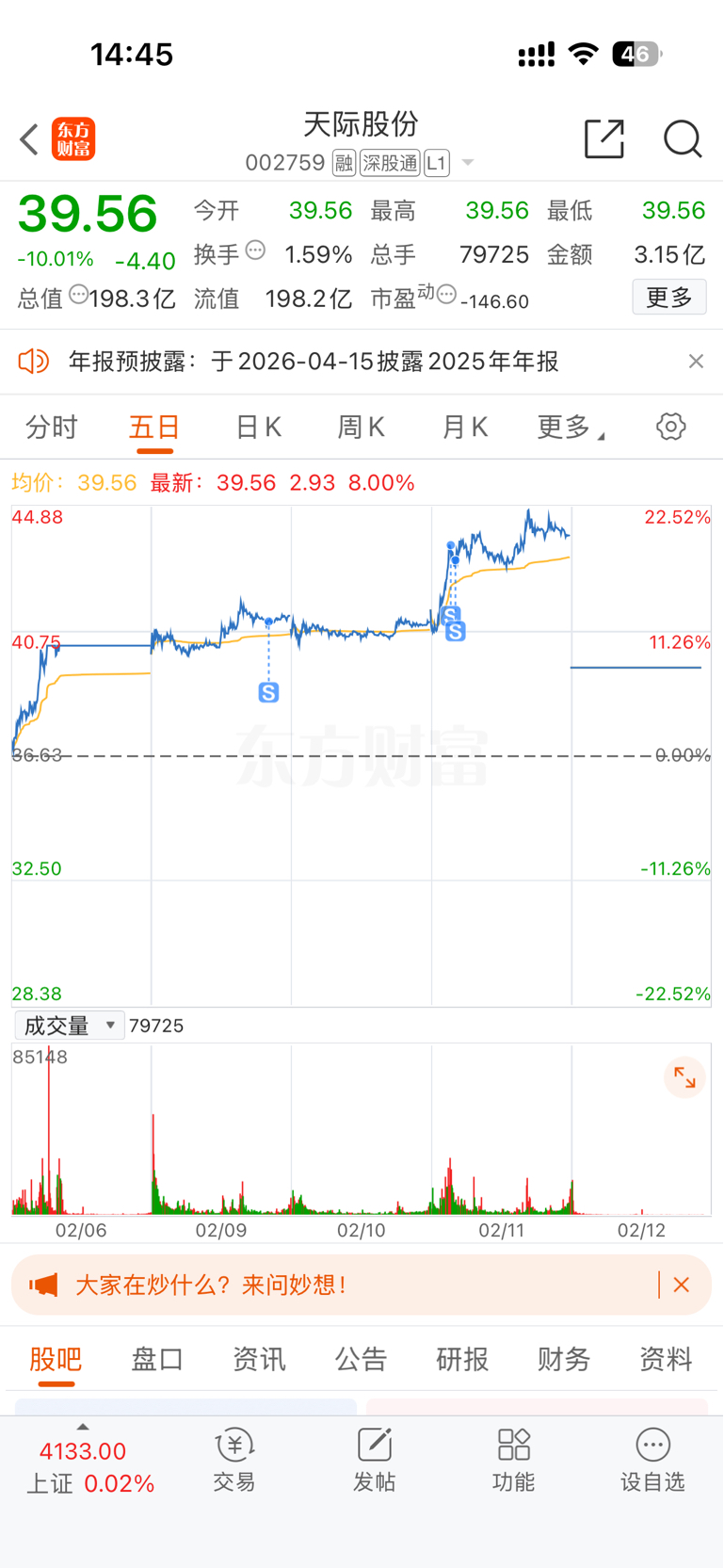 $天际股份(SZ002759)$ 还好昨天感觉不对全部清仓了,好险啊吓死人。